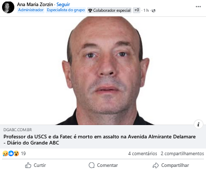 Professor da USCS e da Fatec é morto em assalto na Avenida Almirante Delamare