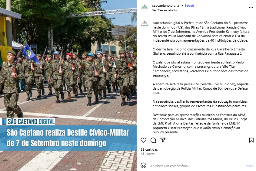 Veículo: Online -> Instagram -> Instagram São Caetano Digital