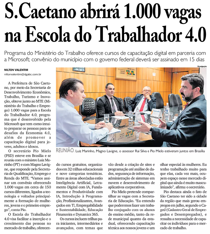 S.Caetano abrirá 1.000 vagas na Escola do Trabalho 4.0