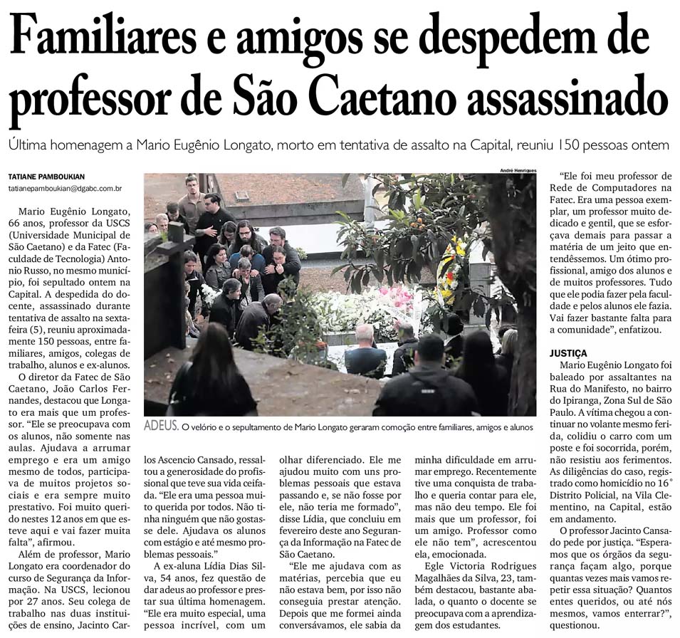 Familiares e amigos se despedem de professor de São Caetano assassinado