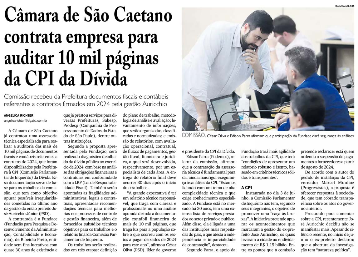 Câmara de São Caetano contrata empresa para auditar 10 mil páginas da CPI da Dívida