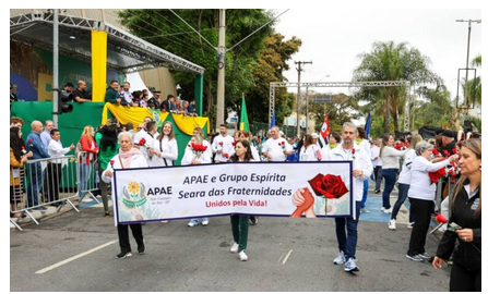 A abertura ficou por conta da GCM (Guarda Civil Municipal), seguida por contingentes da Polícia Militar, do Corpo de Bombeiros e da Defesa Civil. Em seguida, desfilaram representantes da rede municipal de ensino, entidades sociais, escoteiros e instituições parceiras. A parte musical foi um dos pontos altos da programação, com apresentações da Fanfarra da APAE, da Corporação Musical dos Patrulheiros Mirins, do Druns Corps da EME Profª Alcina Dantas Feijão e da Fanfarra da EMEFM Arquiteto Oscar Niemeyer, que animaram e emocionaram o público.