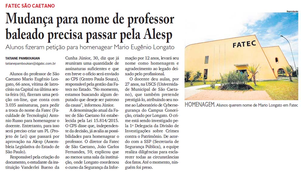Mudança para nome de professor baleado precisa passar pela Alesp