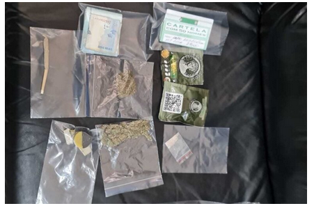 Na ação, foi constatado que o condutor não possuía CNH e tinha antecedentes criminais por tráfico de drogas. Já o passageiro carregava uma pochete contendo diversas substâncias análogas a drogas, entre elas maconha e haxixe.