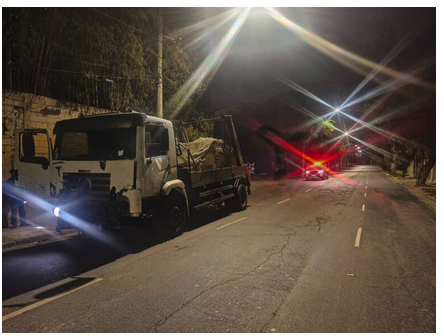 Por volta das 4h, o sistema de monitoramento identificou a entrada de um caminhão VW modelo 17.280, em área próxima ao cruzamento da Avenida dos Estados com a Rua Pedro Alexandrino, ponto conhecido por frequentes despejos clandestinos de resíduos. O caminhão já vinha sendo monitorado pelas GCM e o Smart Sanca.