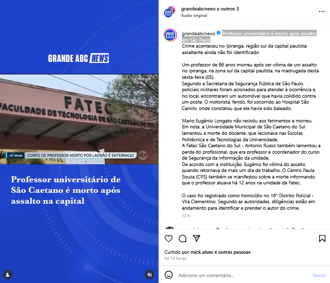Veículo: Online -> Instagram -> Instagram Grande ABC News
