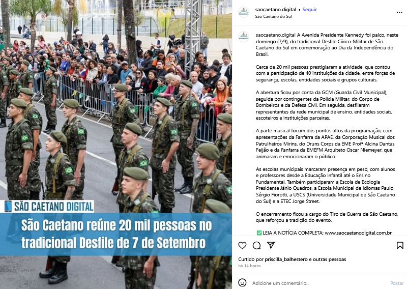 Veículo: Online -> Instagram -> Instagram São Caetano Digital
