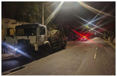 Por volta das 4h, o sistema de monitoramento identificou a entrada de um caminhão VW modelo 17.280, em área próxima ao cruzamento da Avenida dos Estados com a Rua Pedro Alexandrino, ponto conhecido por frequentes despejos clandestinos de resíduos. O caminhão já vinha sendo monitorado pelas GCM e o Smart Sanca.