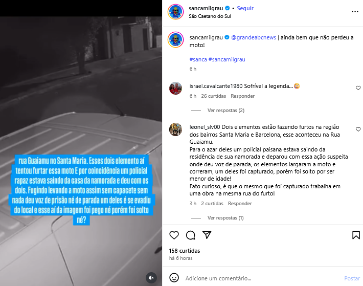 Veículo: Online -> Instagram -> Instagram Sanca Mil Grau