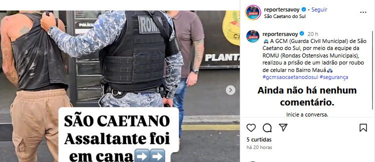 GCM realizou a prisão de um ladrão por roubo de celular no Bairro Mauá