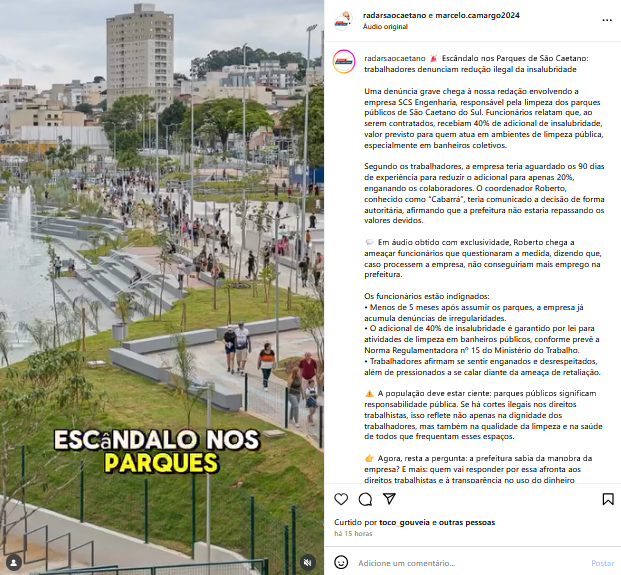 Escândalo nos Parques de São Caetano: trabalhadores denunciam redução ilegal da insalubridade