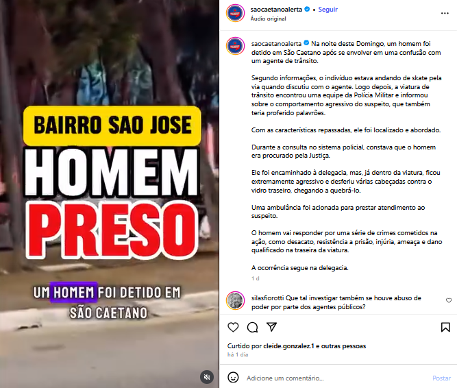 Veículo: Online -> Instagram -> Instagram São Caetano Alerta