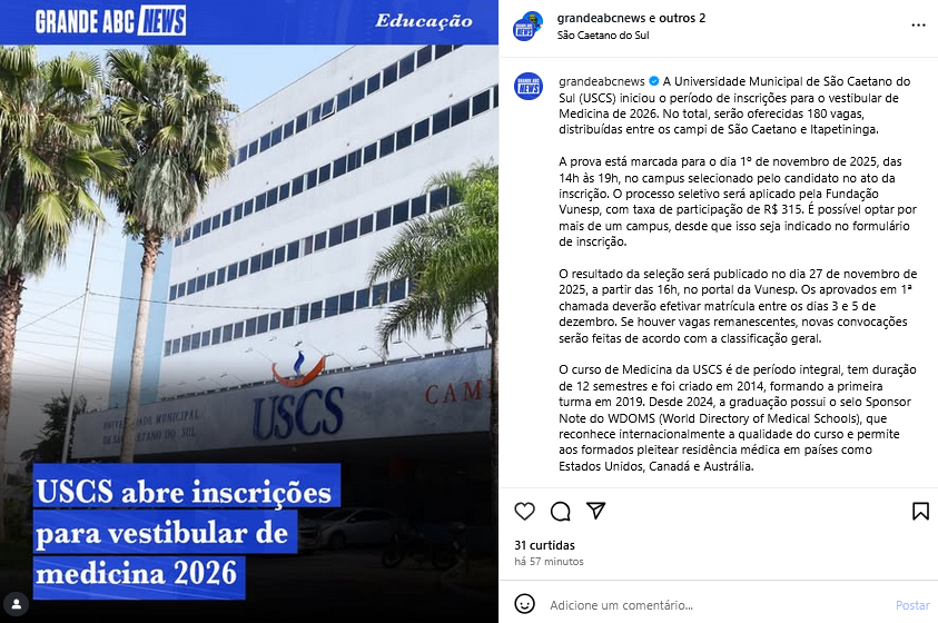 Veículo: Online -> Instagram -> Instagram Grande ABC News