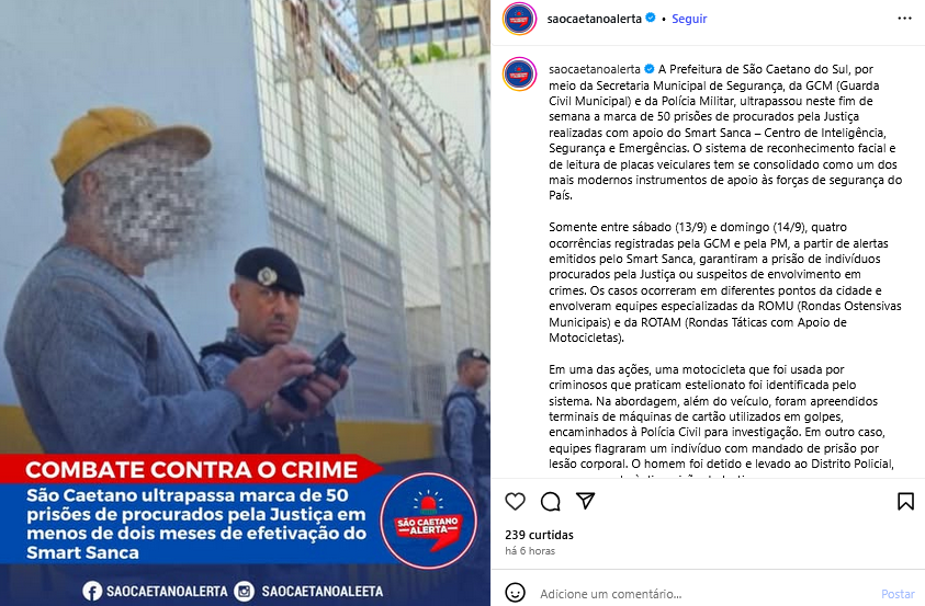 São Caetano ultrapassa marca de 50 prisões de procurados pela Justiça em menos de dois meses de efetivação do Smart Sanca