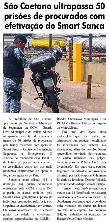 São Caetano ultrapassa 50 prisões de procurados com efetivação do Smart Sanca