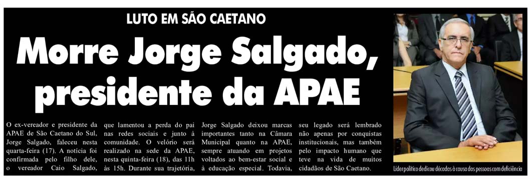 Morre Jorge Salgado, presidente da APAE