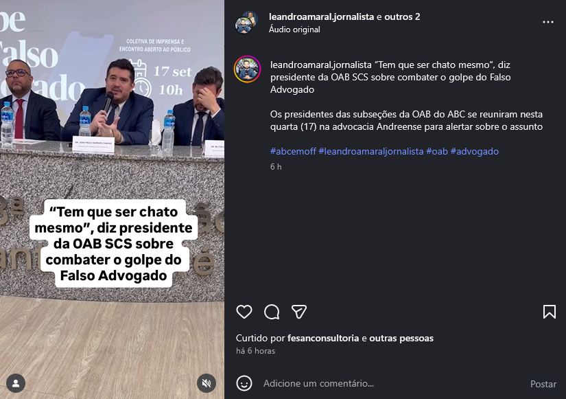“Tem que ser chato mesmo”, diz presidente da OAB SCS sobre combater o golpe do Falso Advogado