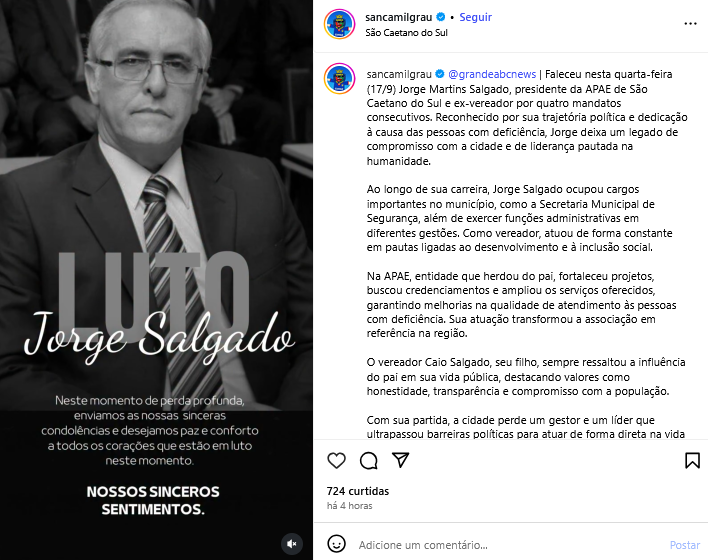Faleceu Jorge Martins Salgado, presidente da APAE-SCS e ex-vereador