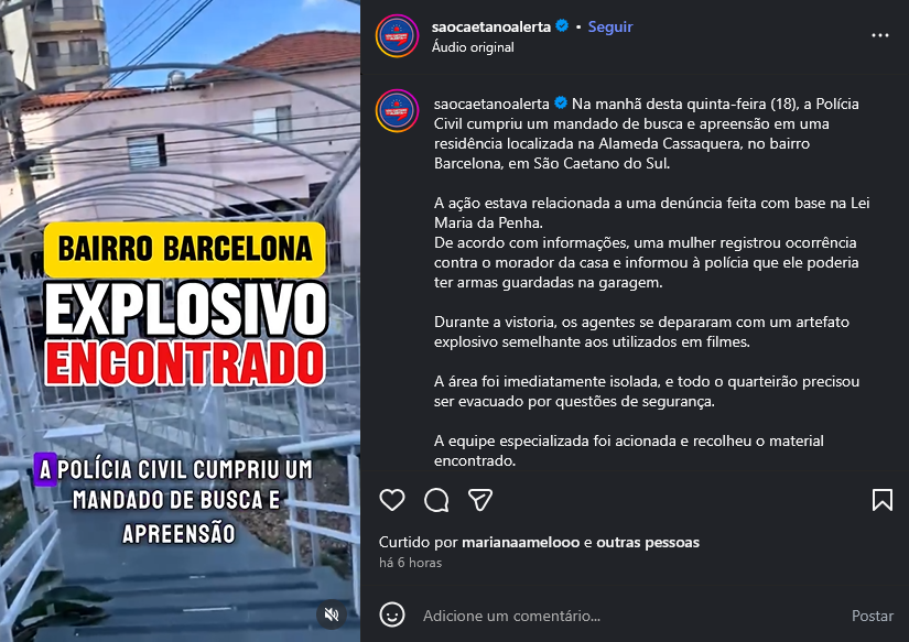 Veículo: Online -> Instagram -> Instagram São Caetano Alerta