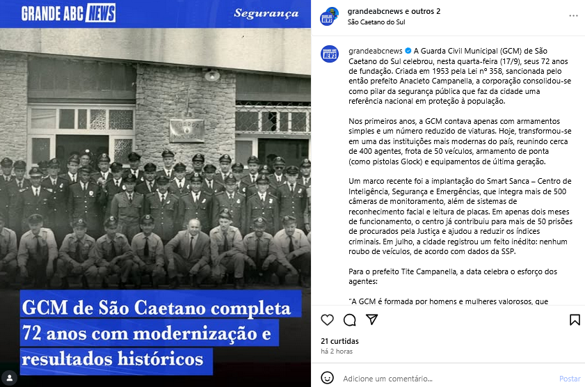 GCM de São Caetano completa 72 anos com modernização e resultados históricos