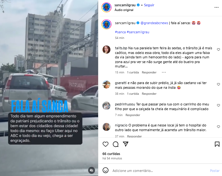 Veículo: Online -> Instagram -> Instagram Sanca Mil Grau