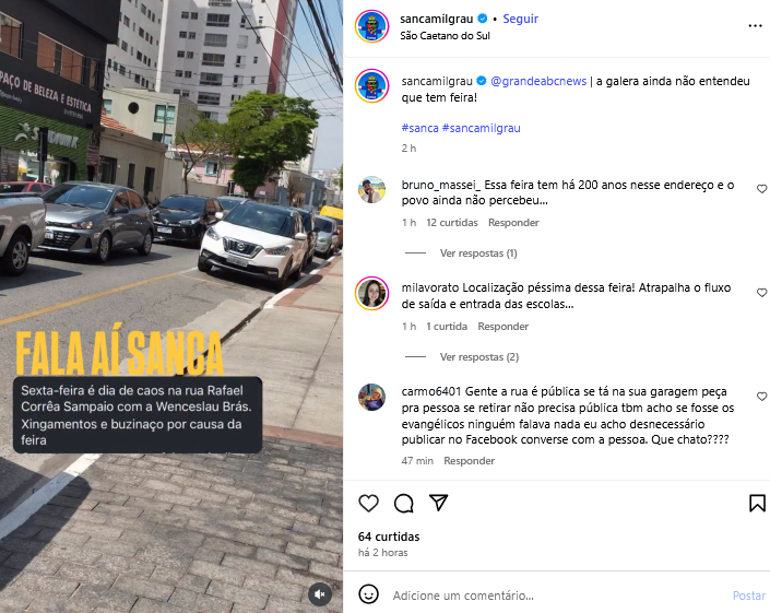 Veículo: Online -> Instagram -> Instagram Sanca Mil Grau