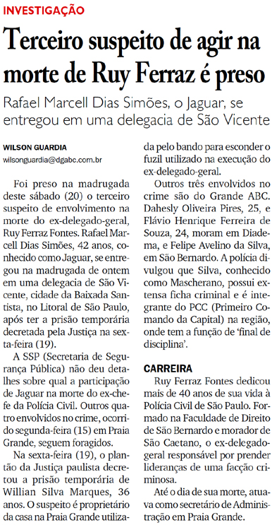 Veículo: Impresso -> Jornal -> Jornal Diário do Grande ABC