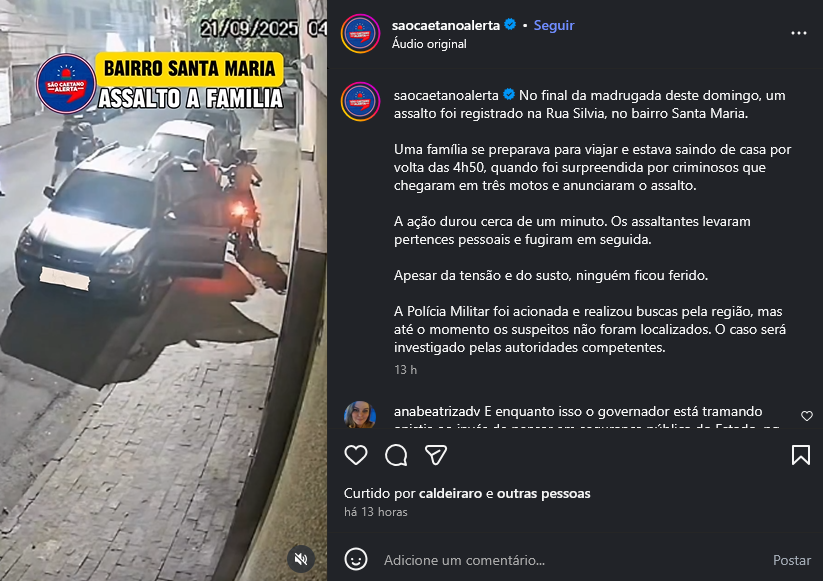 Veículo: Online -> Instagram -> Instagram São Caetano Alerta