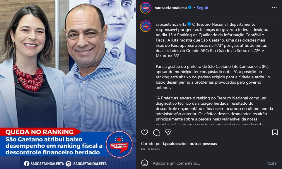 Veículo: Online -> Instagram -> Instagram São Caetano Alerta
