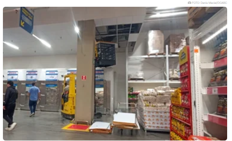 Teto de supermercado cai após chuvas fortes em São Caetano
