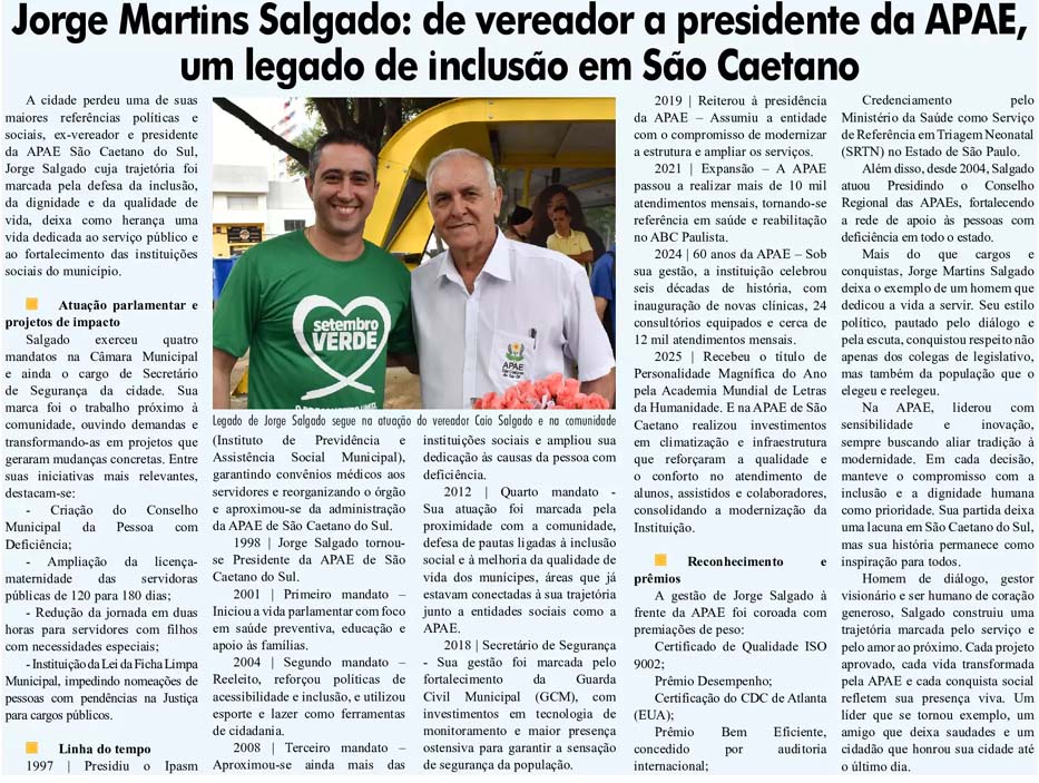 Jorge Martins Salgado: de vereador a presidente da APAE, um legado de inclusão em São Caetano