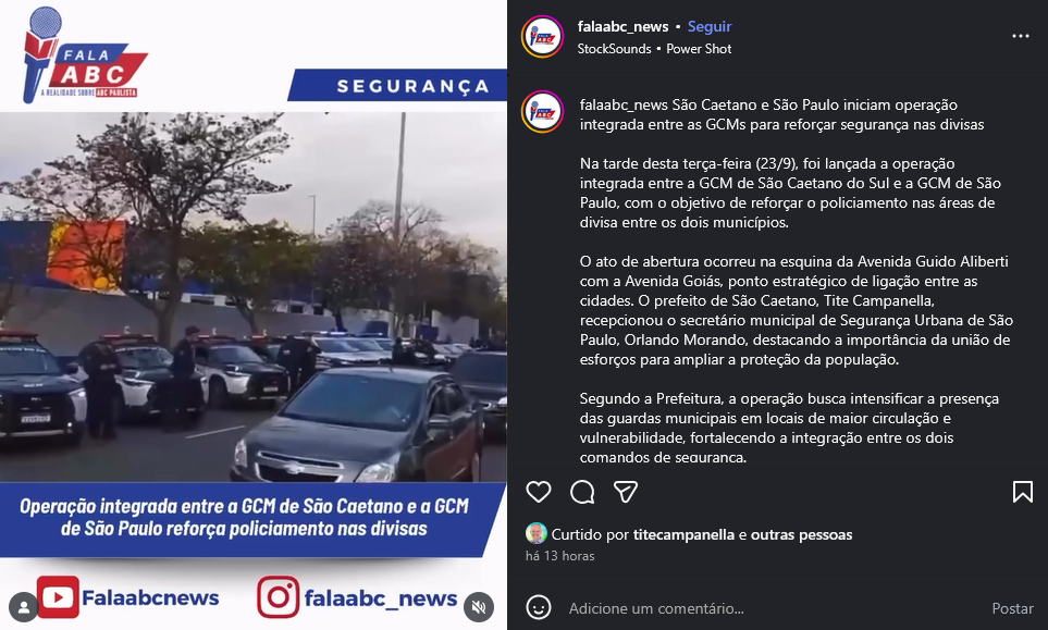 Veículo: Online -> Instagram -> Instagram Fala ABC
