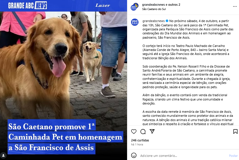São Caetano promove 1ª Caminhada Pet em homenagem a São Francisco de Assis