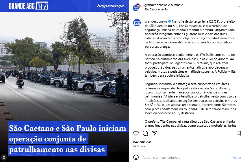 Veículo: Online -> Instagram -> Instagram Grande ABC News
