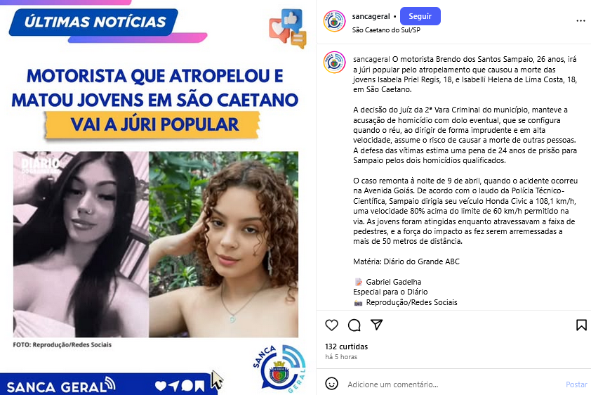Motorista que atropelou e matou jovens em São Caetano vai a júri popular