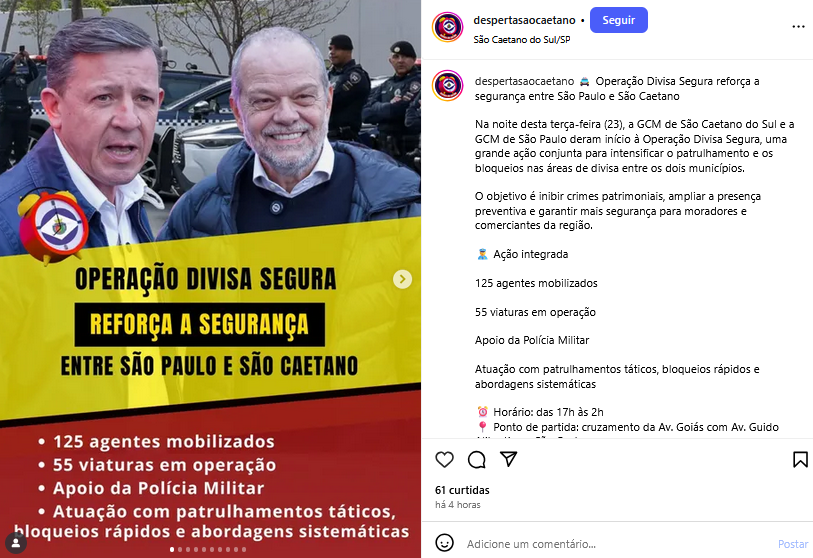 Operação Divisa Segura reforça a segurança entre São Paulo e São Caetano