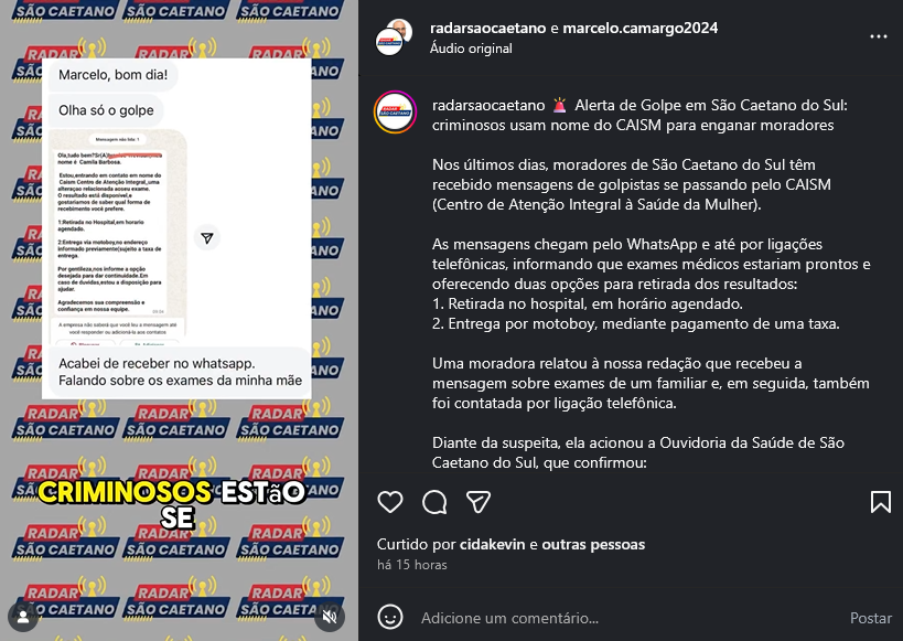 Alerta de Golpe em São Caetano do Sul: criminosos usam nome do CAISM para enganar moradores