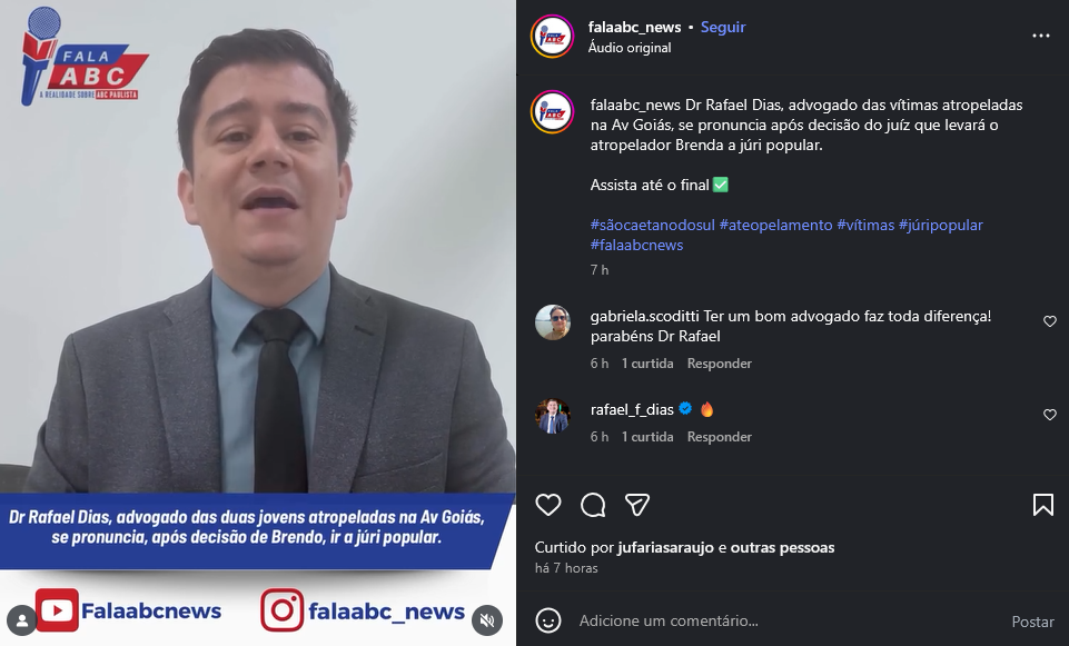 Dr Rafael Dias, advogado das vítimas atropeladas na Av Goiás, se pronuncia após decisão de Brendo ir a júri popular