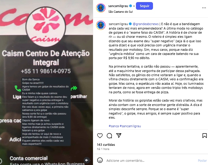Veículo: Online -> Instagram -> Instagram Sanca Mil Grau