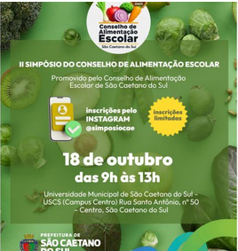 Você ainda pode se inscrever e participar do II Simpósio de Alimentação Escolar de São Caetano do Sul promovido pelo CAE – Conselho de Alimentação Escolar de SCS, entidade presidida pelo Professor Pará. O encontro será no dia 18 de outubro, sábado, das 9h até 13h, tendo como local o auditório da USCS, na Rua Santo Antônio, 50, no Centro da cidade.