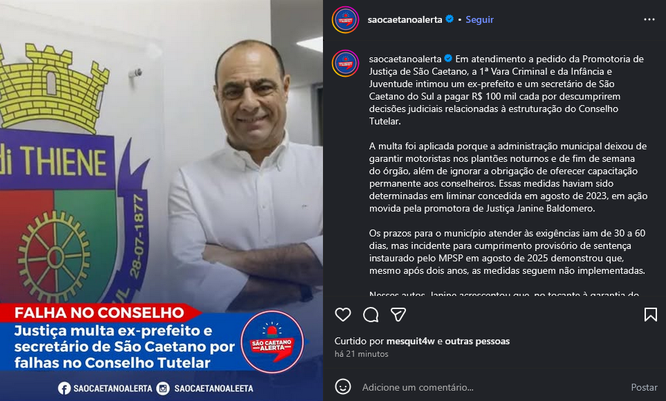 Veículo: Online -> Instagram -> Instagram São Caetano Alerta
