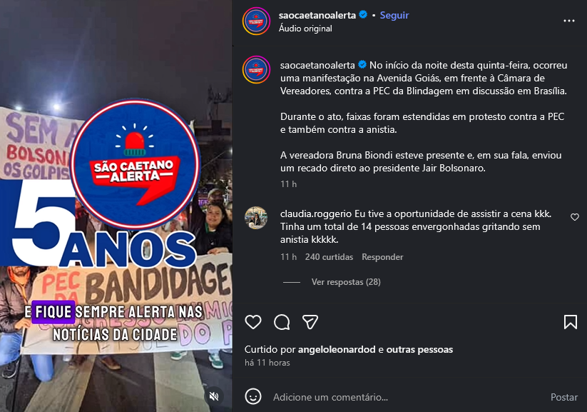 Veículo: Online -> Instagram -> Instagram São Caetano Alerta