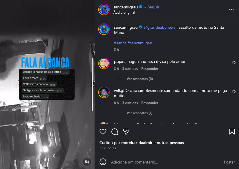 Veículo: Online -> Instagram -> Instagram Sanca Mil Grau