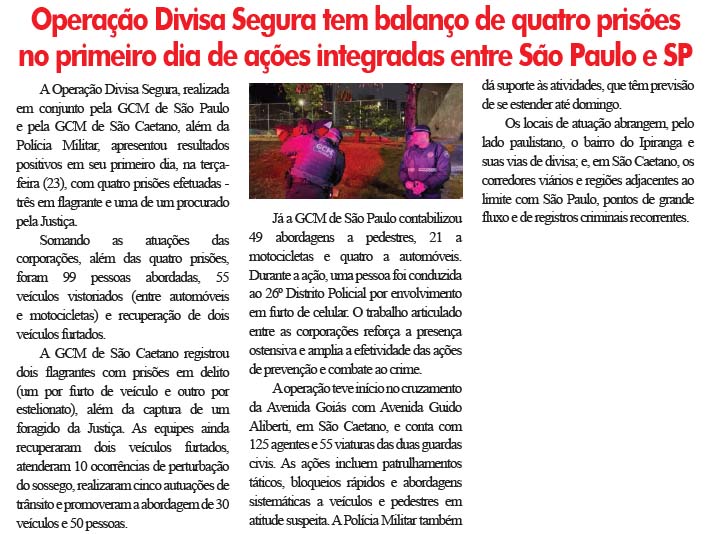 Operação Divisa Segura tem balanço de quatro prisões no primeiro dia de ações integradas entre São Paulo e SP