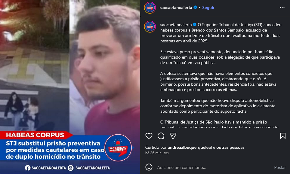 Veículo: Online -> Instagram -> Instagram São Caetano Alerta