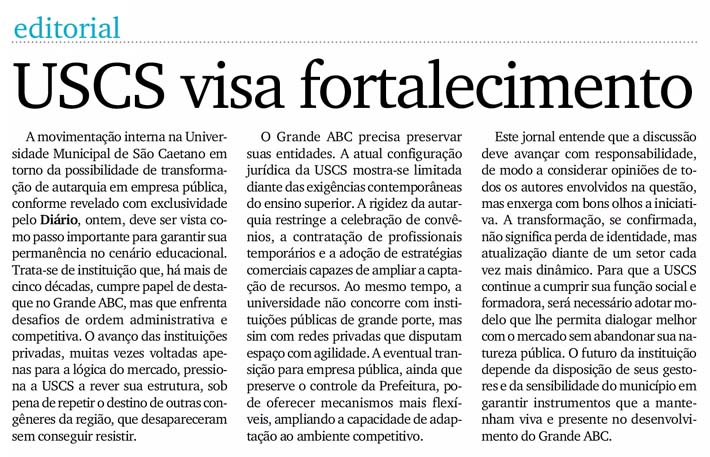 Editorial - USCS visa fortalecimento