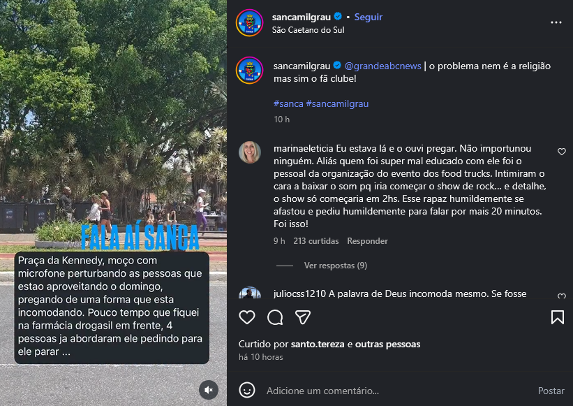 Veículo: Online -> Instagram -> Instagram Sanca Mil Grau