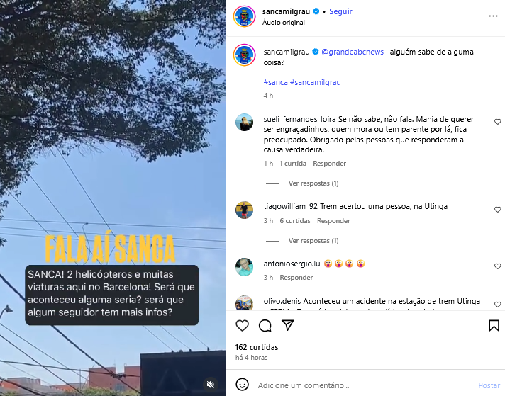Veículo: Online -> Instagram -> Instagram Sanca Mil Grau
