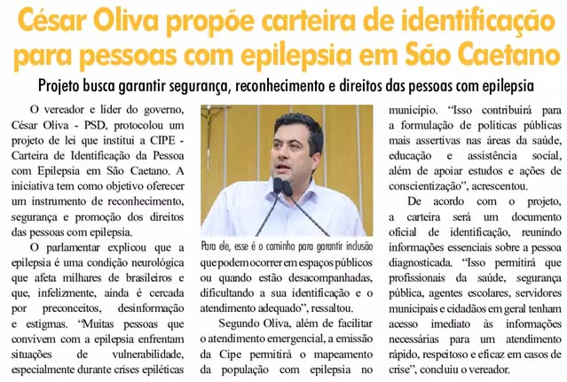 César Olivia propõe carteira de identificação para pessoas com epilepsia em São Caetano