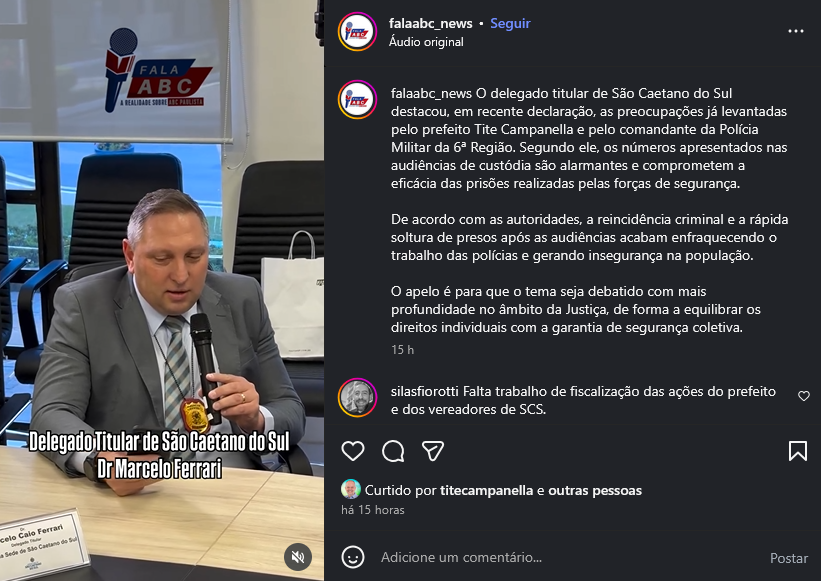 Fala do delegado titular de São Caetano do Sul, Dr Marcelo Ferrari